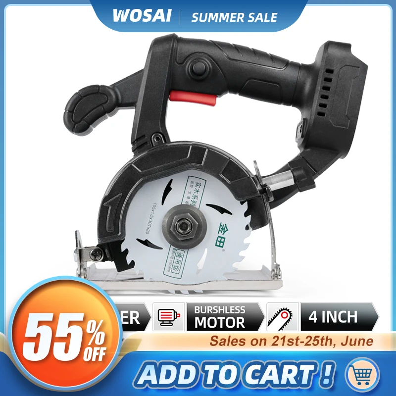 Пила циркулярная WOSAI, 20 в, 4 дюйма, беспроводная, MT-SER