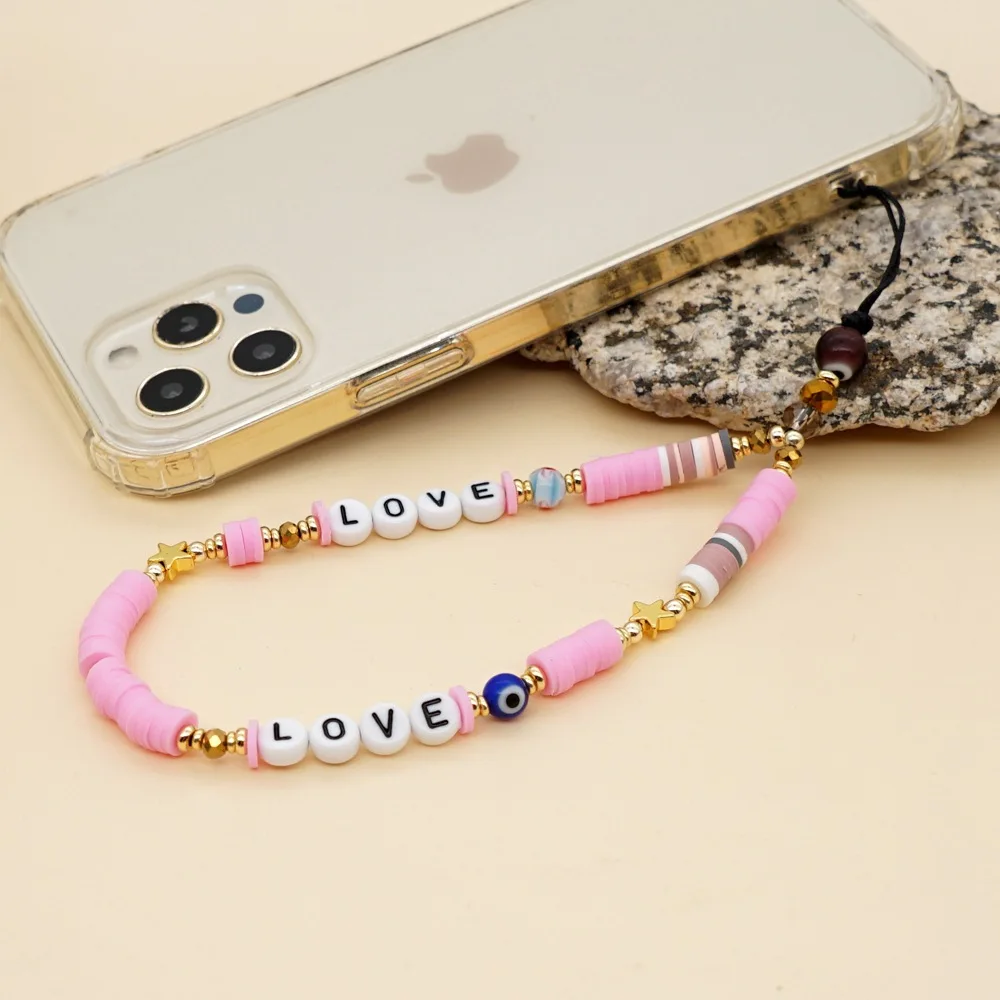 Цепочка для телефона, ремешок с бусинами, ремешок на запястье, ремешок с надписью LOVE, виниловые цепочки Heishi со звездами, очаровательные ювелирные изделия от сглаза, Лидер продаж 2021