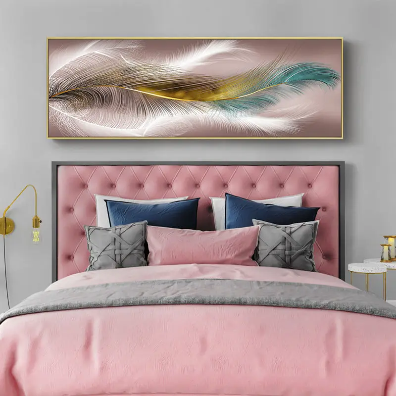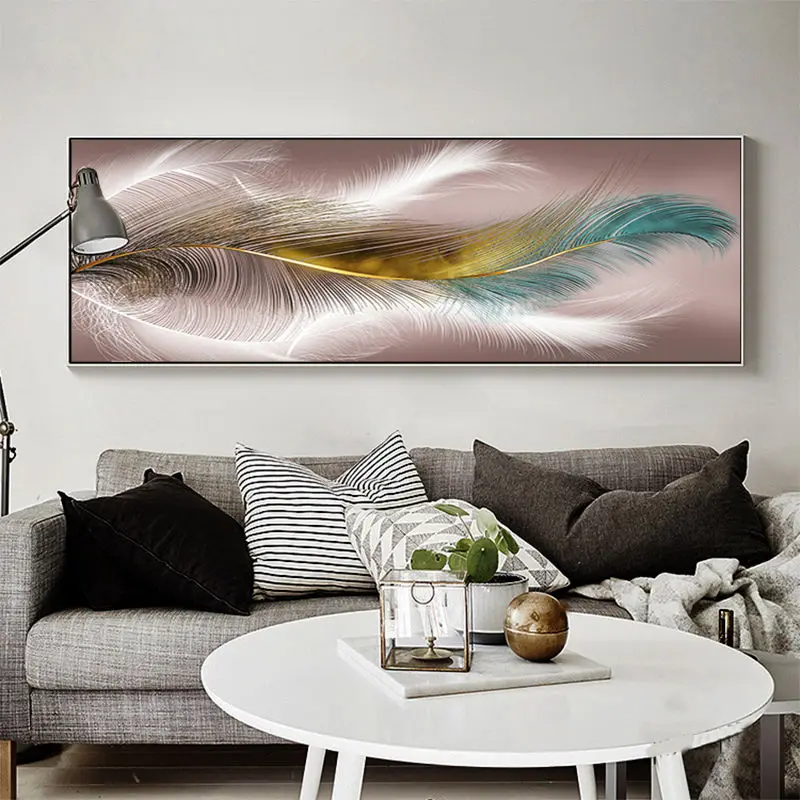 Скандинавская Золотая подвесная фотография с перьями, холст, картин...