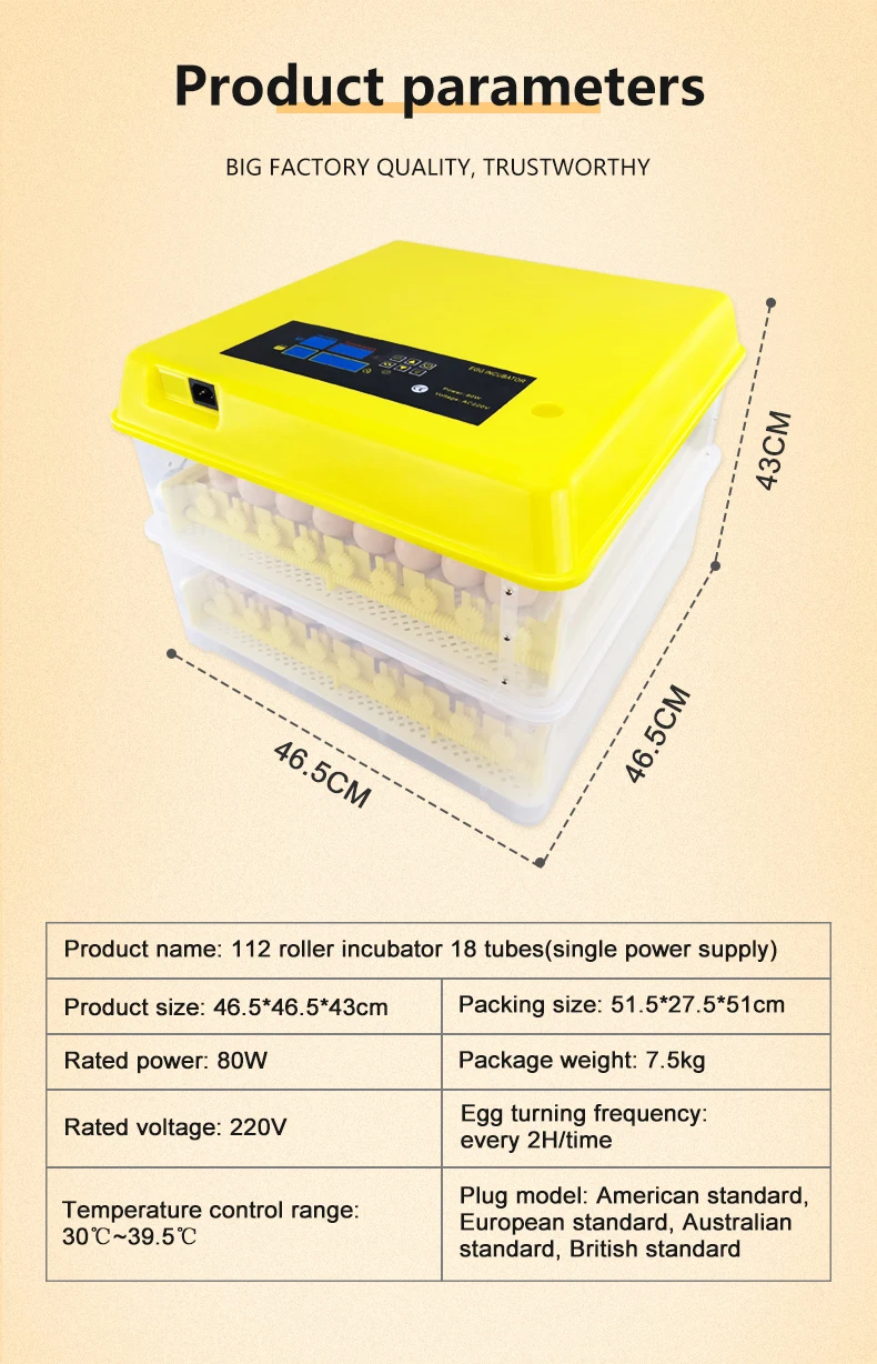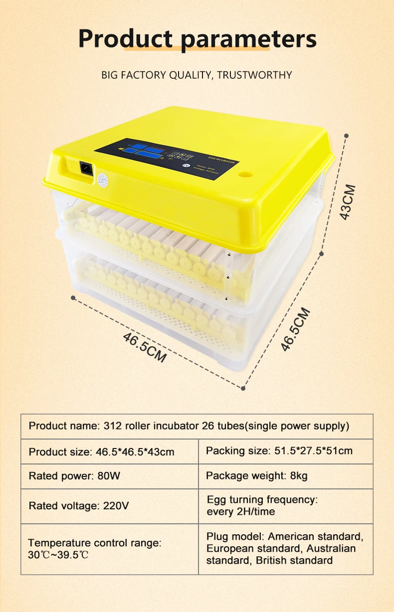 Автоматический роликовый инкубатор для яиц, 112-312 яиц