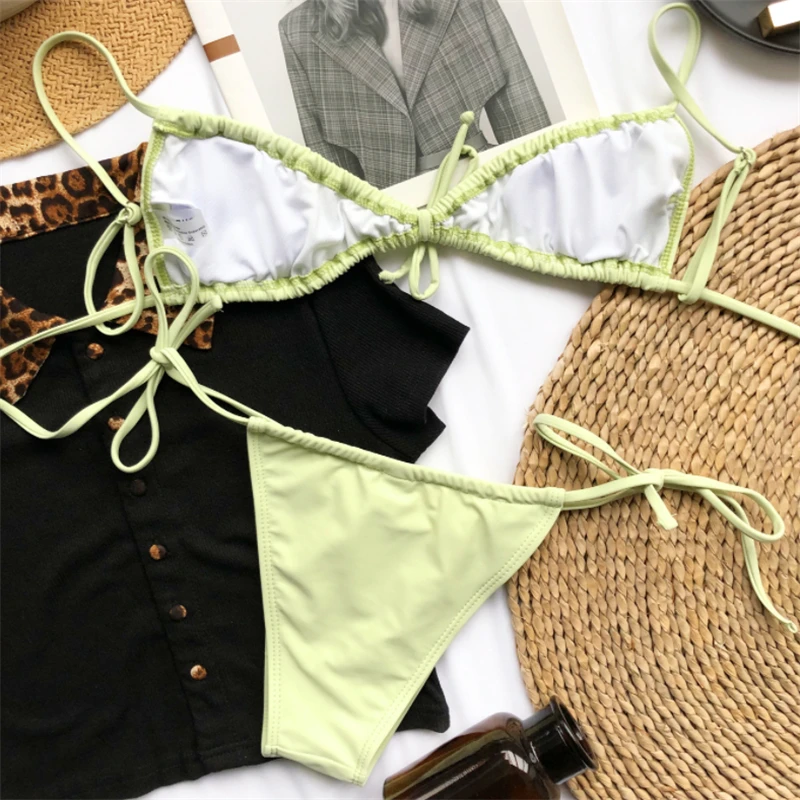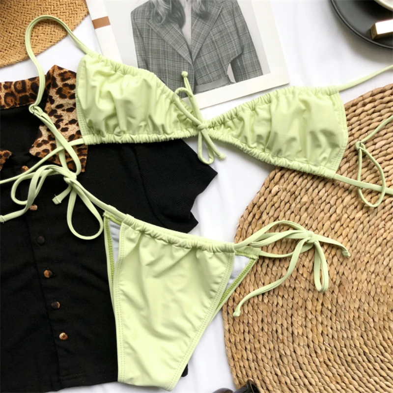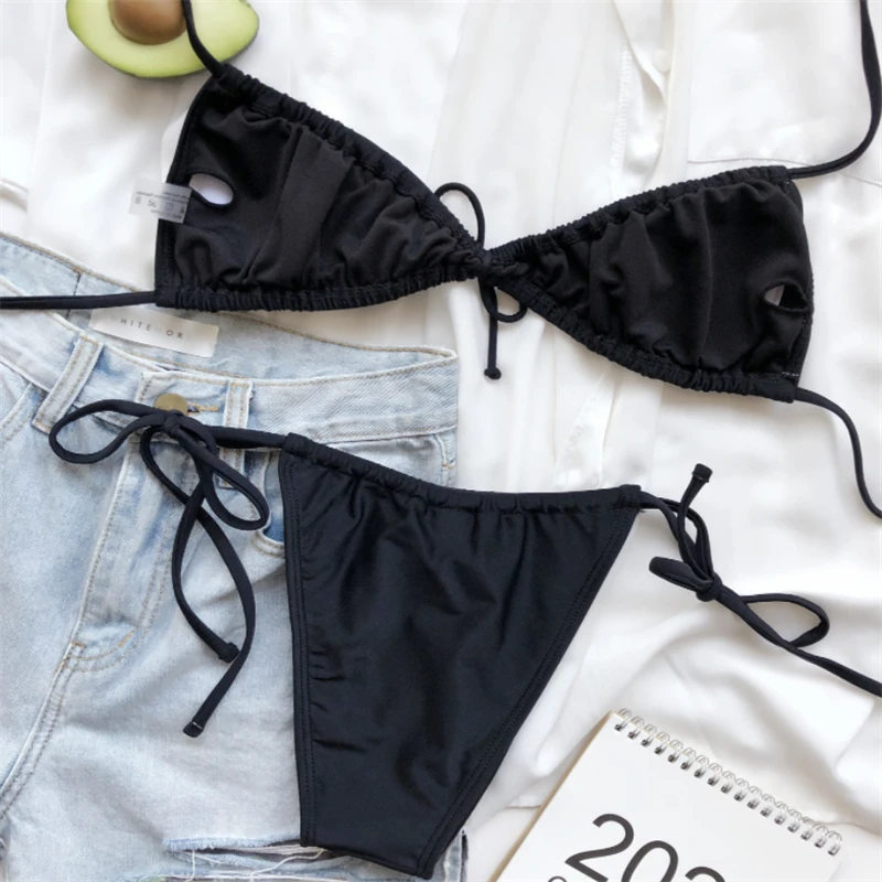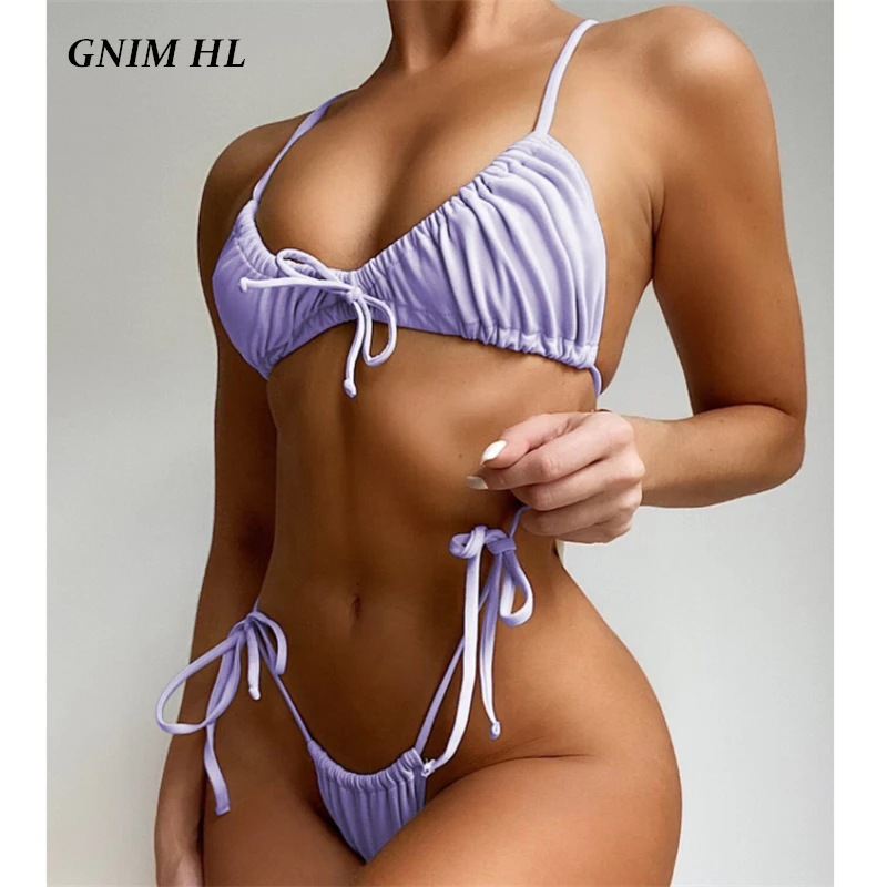 Комплект бикини GNIM Женский, однотонный бандажный, бразильский, халтер, пикантный однотонный купальник, 2 предмета, лето 2021
