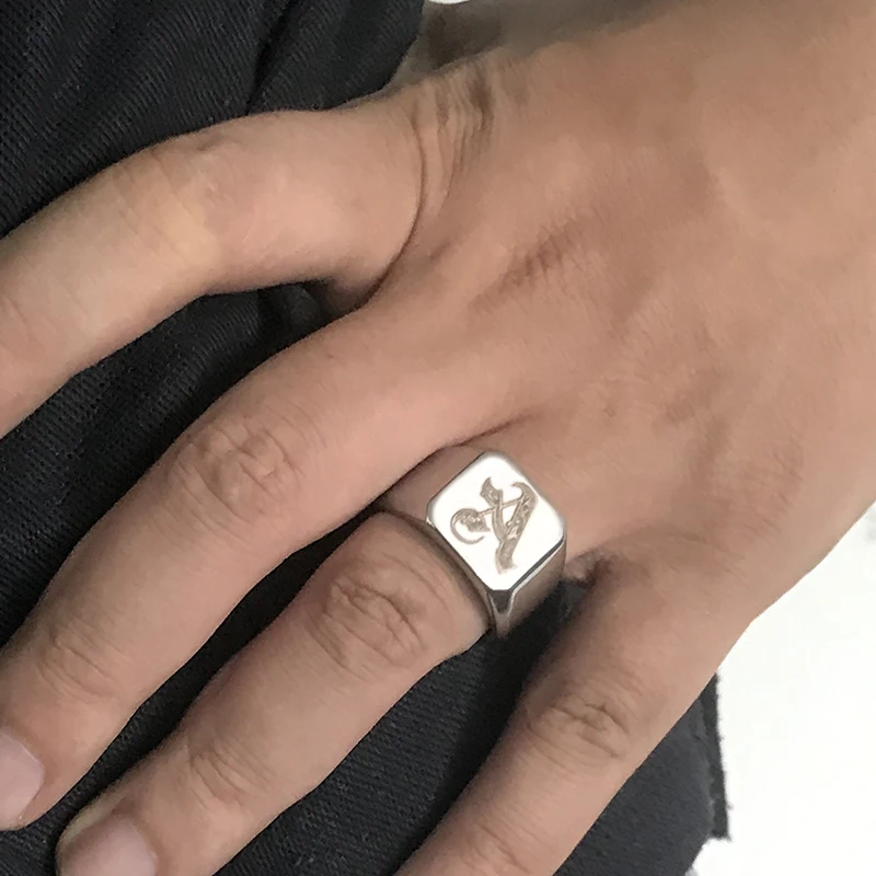 SHOUMAN в ретро-стиле с инициалами насквозь перстень для Для мужчин Для женщин Для мужчин объемные тяжелые штамп группа Нержавеющаясталь фото именем на заказ украшения из букв подарок