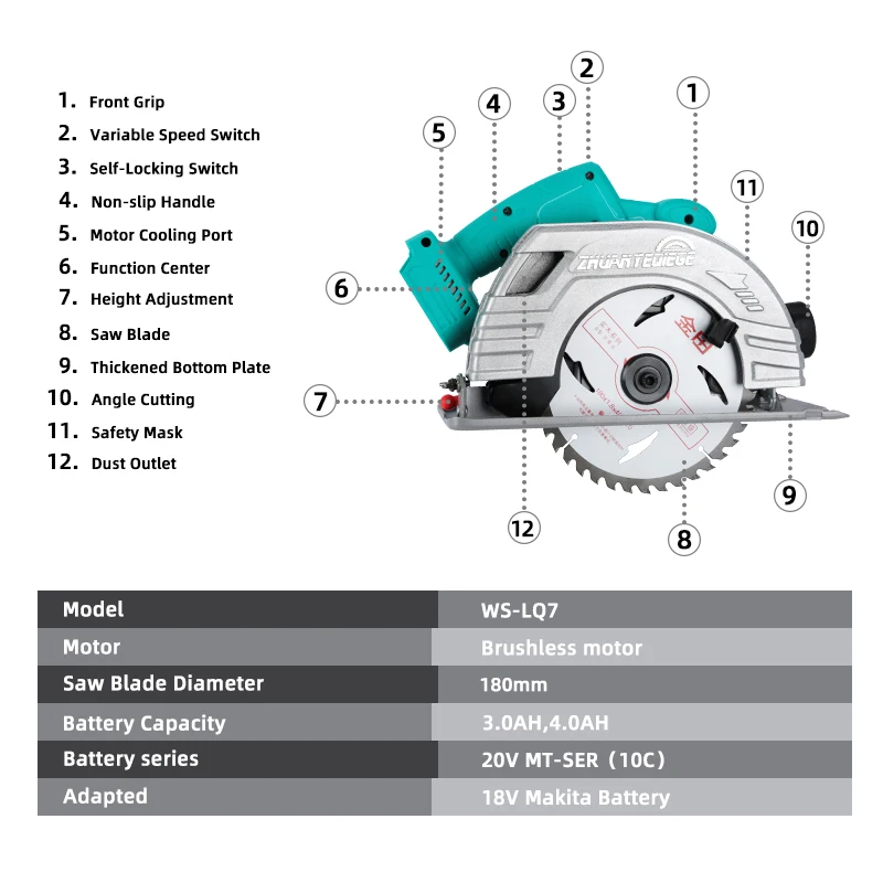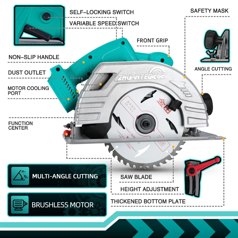 Бесщеточная циркулярная электрическая пила WOSAI MT-Series 20 в 7 д...