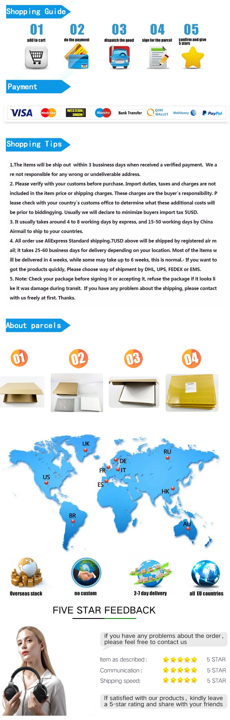 3. Транспортировка через ePacket, стандартную доставку AliExpress, EMS, DHL, UPS и т. д., покупатели могут выбрать свой собственный подходящий вид транспорта.