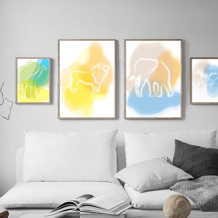 Жираф слон Зебра солнце Радуга мультфильм настенная Картина на холс...