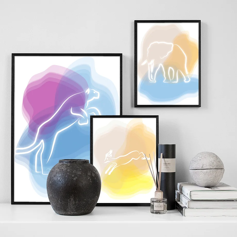 Настенная картина с изображением Льва, лисы, гепарда, жирафа, слона...