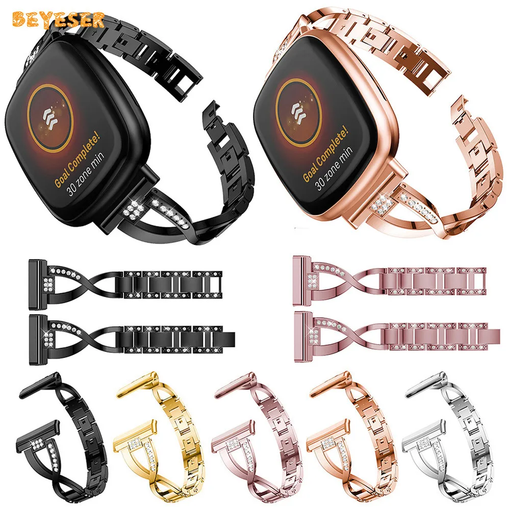 Стразы из нержавеющей стали ремешок для Fitbit Versa 3/Sense Смарт-часы с заменой ремешка ремешок для часов браслет металлический Алмазный Ремень