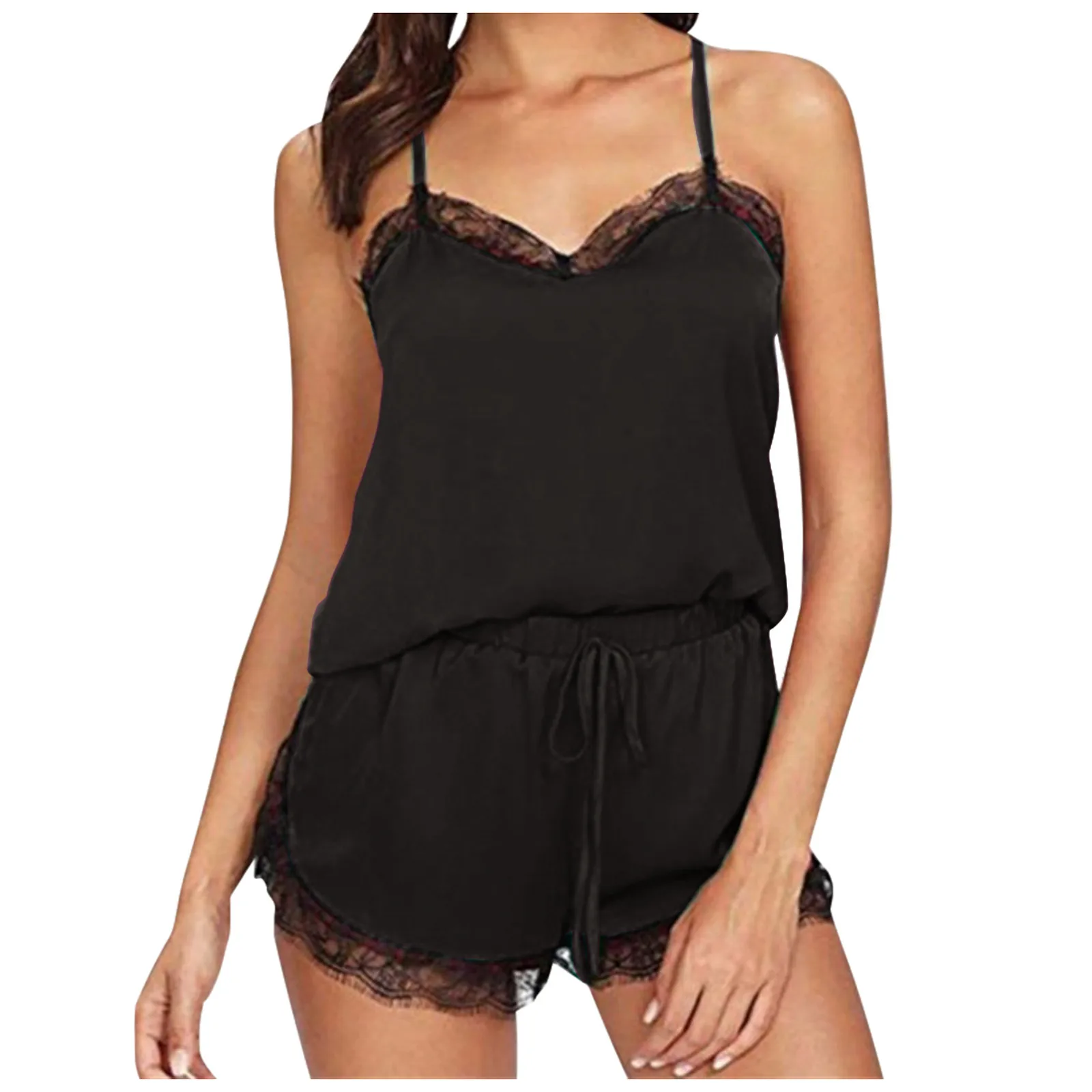 Женские пижамы, пижамы на подтяжках, Атласный топ с кружевной каймой, Пижамный костюм