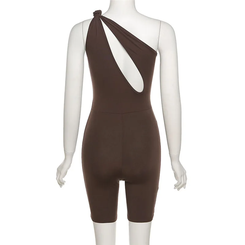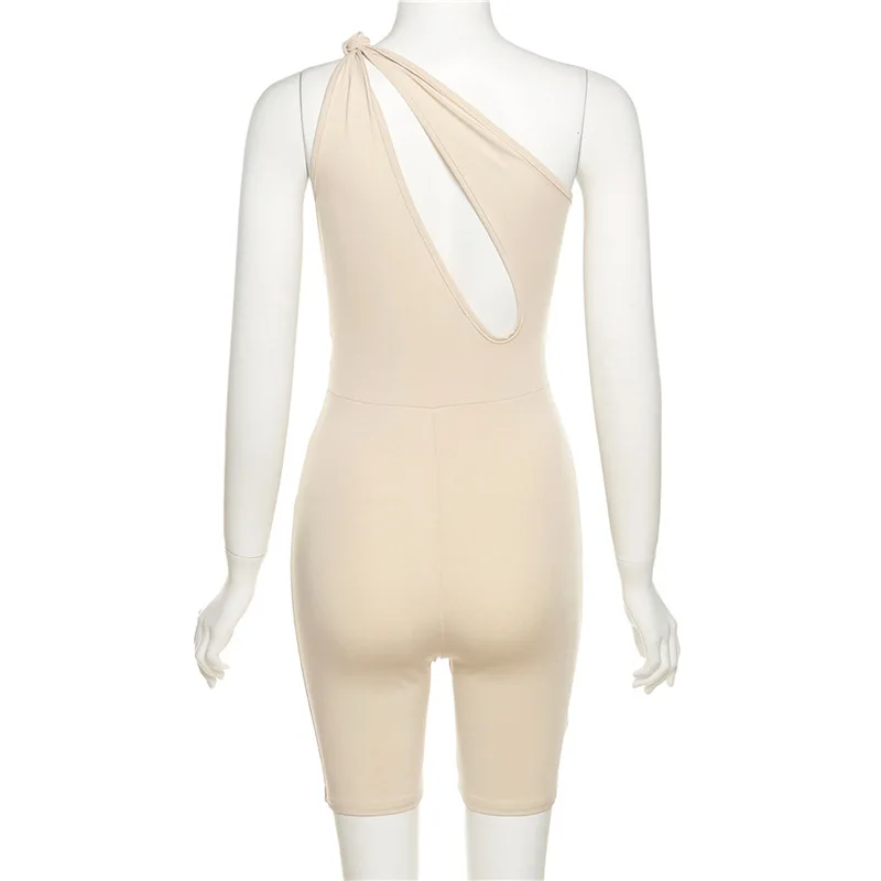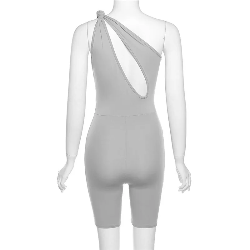 Комбинезон женский короткий, однотонный, на одно плечо, без рукавов...