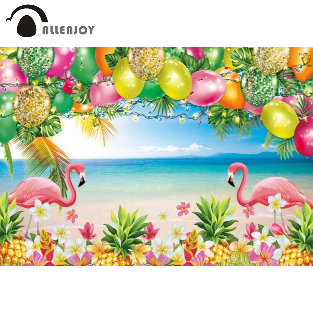 Allenjoy Фламинго день рождения Лето Гавайи праздник фон море остров пляж фон пользовательские обои Вечерние Декорации фотосессия