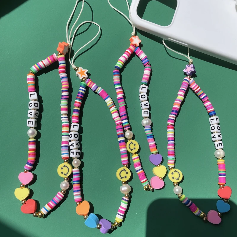 Ремешок для Телефона HUANZHI Женский, цветной, с жемчугом и фруктами, мобильный телефон шнурок, мягкий, керамический, летний