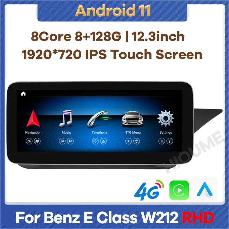 Мультимедийный плеер на Android 11, 8-ядерный процессор, экран 12,3 дюйма, 8 ГБ + 64 Гб128 ГБ, GPS навигация, для автомобилей Mercedes Benz E Class W212 2009-2015 RHD