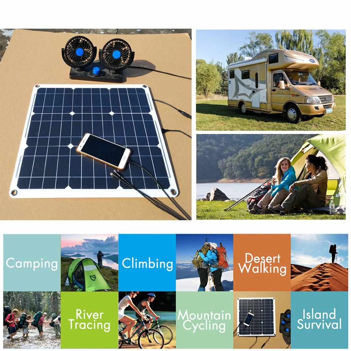 30 Вт/60 Вт Солнечная зарядная панель W присоски и Карабинеры DUO выход для 12V5V вентилятор для кемпинга/лампа/система генератора мощности