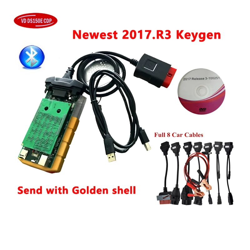 Новинка 2021, VCI 2017.R3 с генератором ключей VD DS150E Cdp Pro, Золотой корпус, Bluetooth для delicht Obd2, диагностический инструмент для грузовиков, сканер Obd