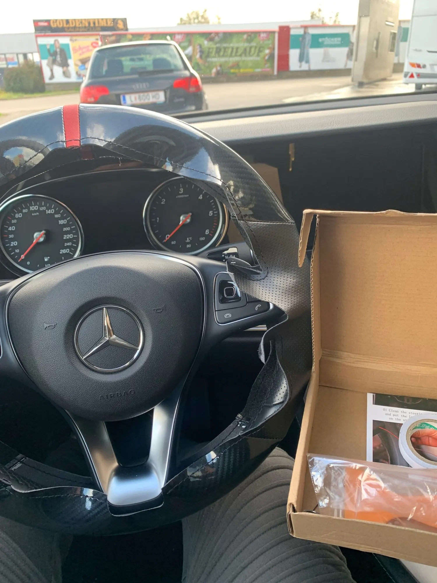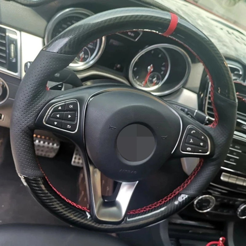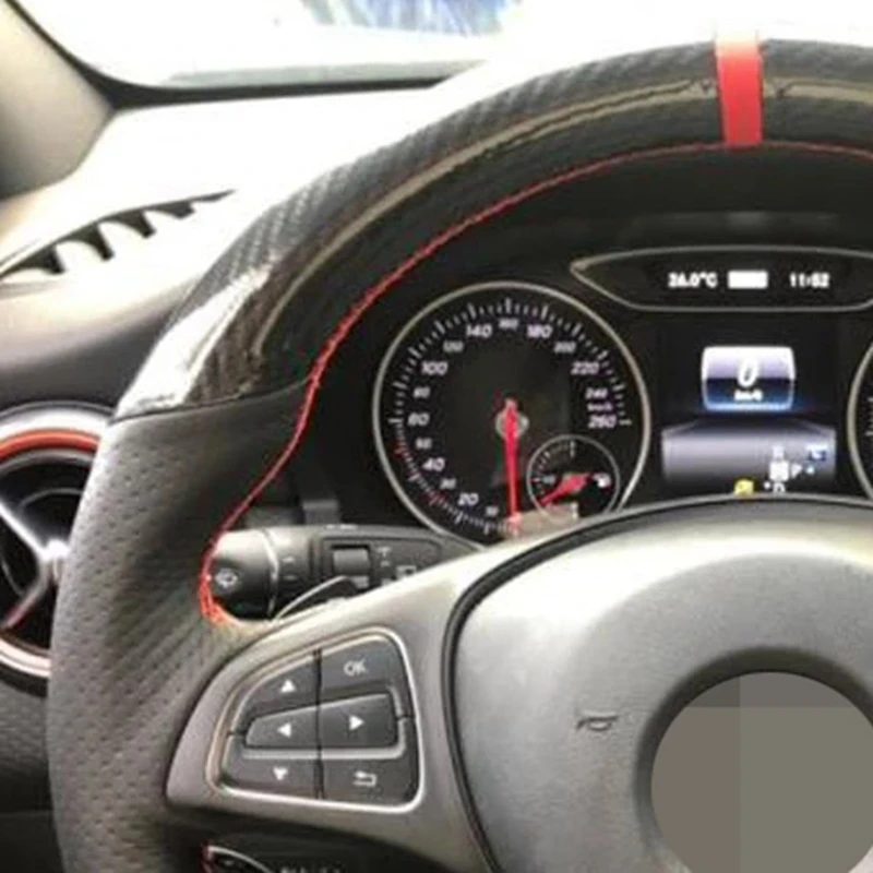 DIY ручной работы мягкой натуральной кожи черного цвета из углеродного волокна Чехол рулевого колеса автомобиля для Mercedes-Benz W176 A180 A200 B180 B200