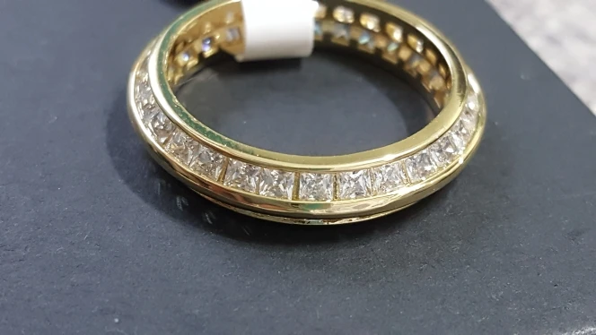 Получила ПОЧТИ ДАРОМ. Продавец быстро отправил выигрыш.Отличное колечко.Без дефектов, закрепка камней идеальная и обработка кольца отличная.Про качество покрытия пока сложно судить, понаблюдаю в процессе носки. Очень довольна! спасибо!