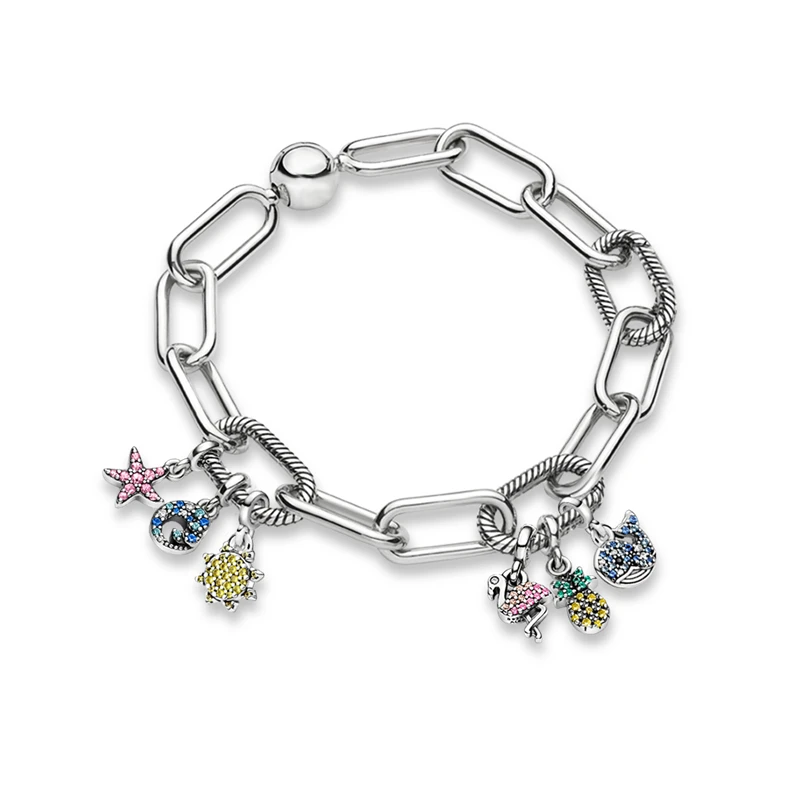 Браслет Pandora из серебра 925 пробы с оригинальным шармом, вышитые...