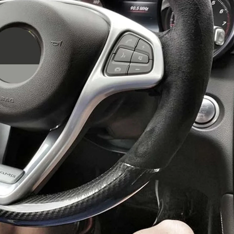 DIY ручной работы мягкая черная замша углеродного волокна Чехол рулевого колеса автомобиля для Mercedes-Benz W176 A180 A200 B180 B200