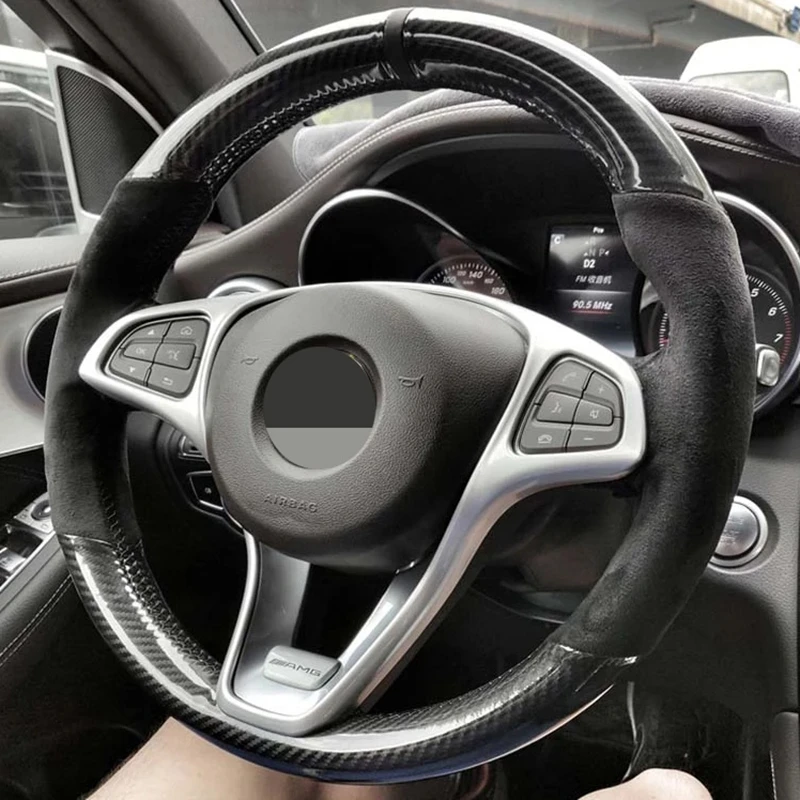Черный углеродного волокна Черная замша чехол рулевого колеса автом...