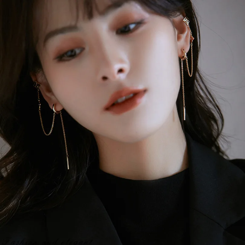 Женские серьги-клипсы со звездами, серьги-каффы с длинной кисточкой...