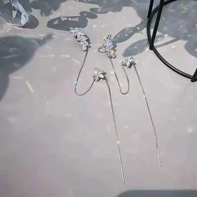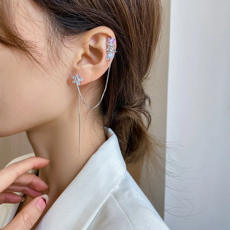 ЦИРКОНИЕВЫЕ цветочные серьги-клипсы для ушей, кости, одна серьга, корейские женские модные серьги с кисточками, ювелирные изделия