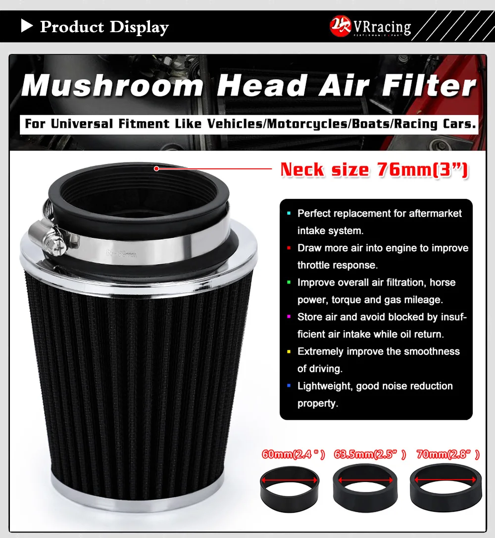 Универсальный автомобильный воздушный фильтр с высоким потоком холодного воздухаШея 76 мм/70 мм/63,5 мм/60 мм Применение: