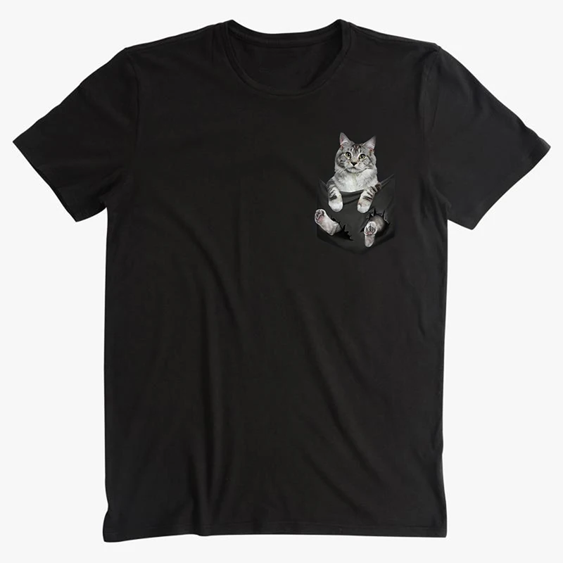 Футболка CLOOCL, модная летняя футболка с карманом в виде кота и ви...