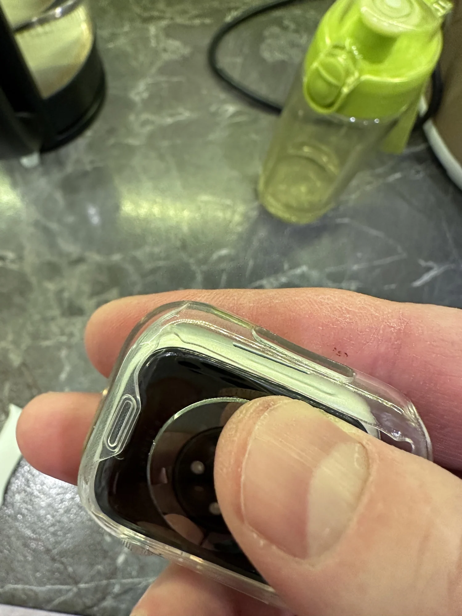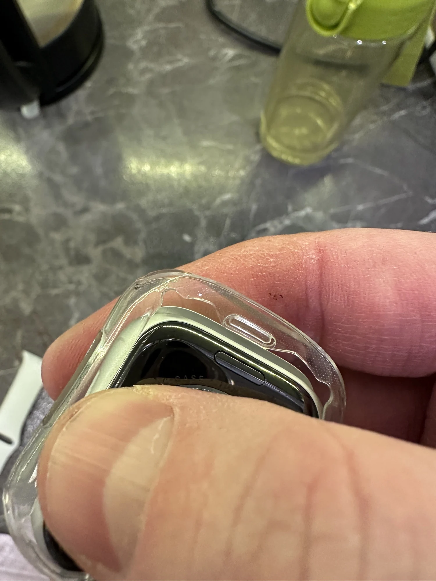 С этим чехлом плохо срабатывает сенсор на часах. И практически невозможно нажать боковую кнопку