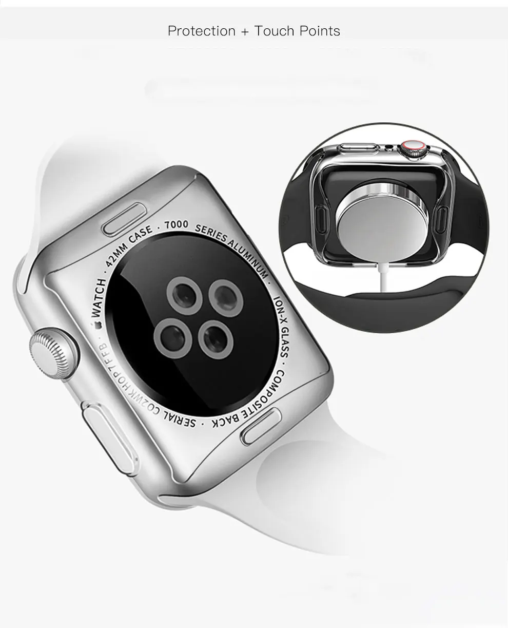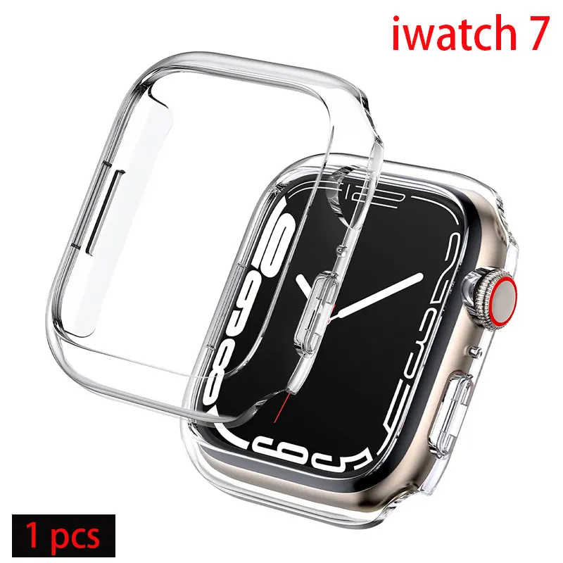 Прозрачный чехол с полным покрытием для Apple Watch, чехол для 7 6 5 SE 45 мм 41 44 42 40 мм, чехол для Iwatch Series 7 6 5 4 3 38 мм, стеклянная защита экрана