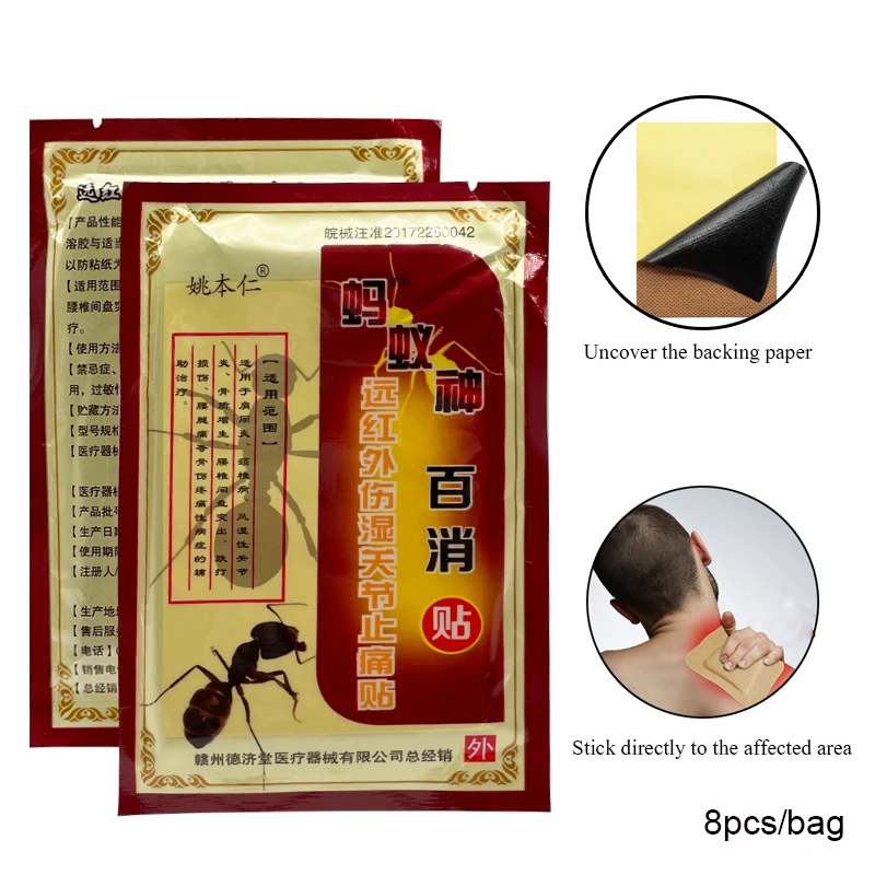 8 шт.пакет китайские травы, черные муравьиные патчи, медицинский пластырь дальнего ИК-излучения, ревматизм артрита боли в суставах, бальзам, наклейка