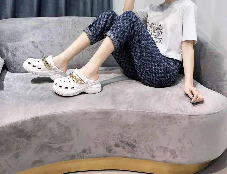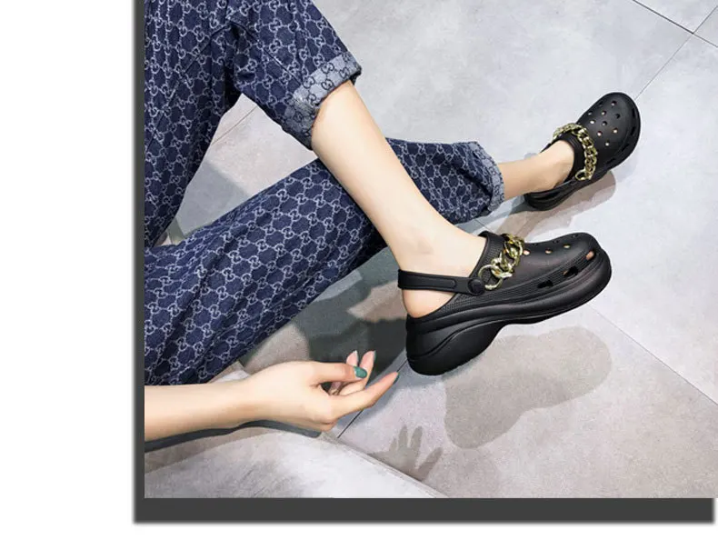 Летние женские сабо на платформе; Обувь для сада; Сандалии; Тапочки, увеличивающие рост; Пляжная обувь без застежки; Модные женские шлепанцы