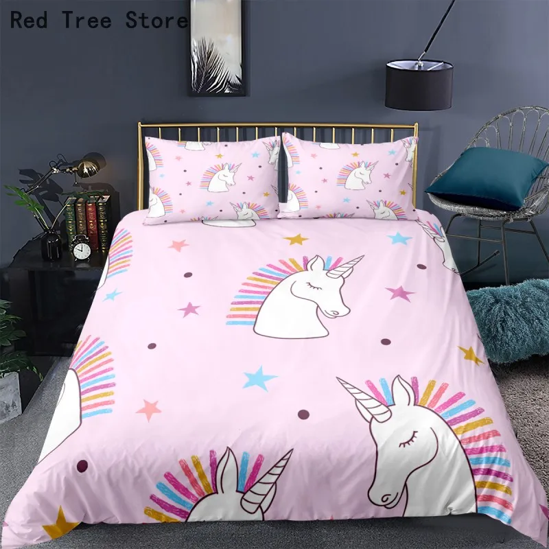 Постельное белье с единорогом, мультяшное милое постельное белье, комплекты для односпальной и двуспальной кровати, пододеяльник, наволочка, для детей, для маленьких девочек, розовый домашний текстиль, размеры СШААвстралииЕС