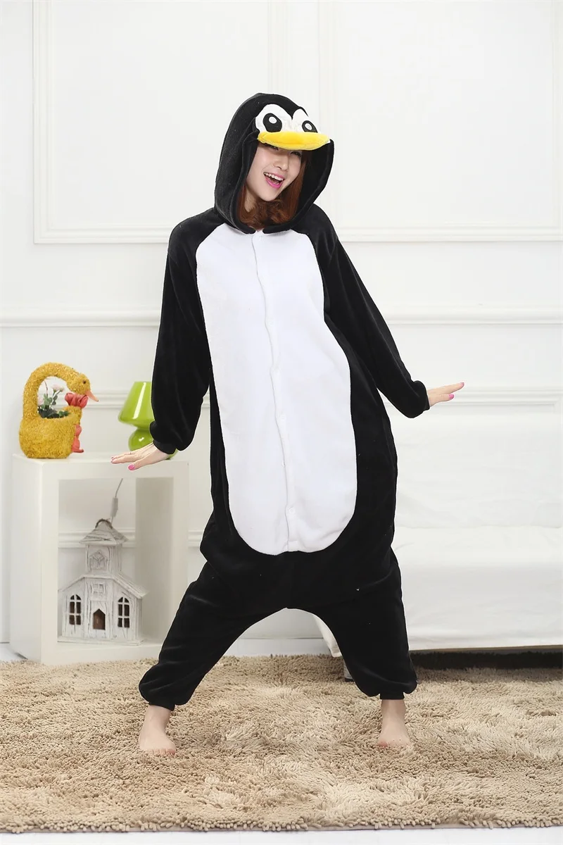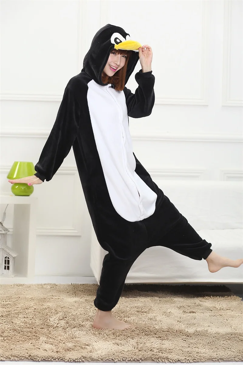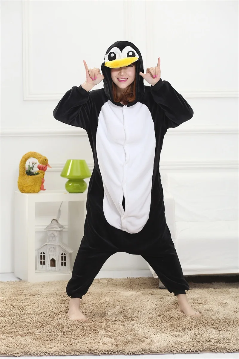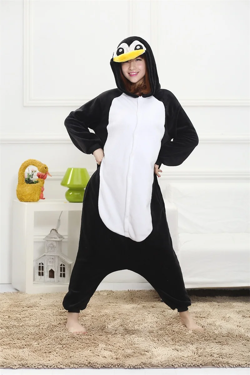 Для женщин Взрослый Пингвин Kigurumis, комбинезончик с изображением забавных животных и героев мультфильмов пижамы вечерние комбинезон Зимние черные сапоги; Теплая одежда для сна милый костюм с комбинезоном