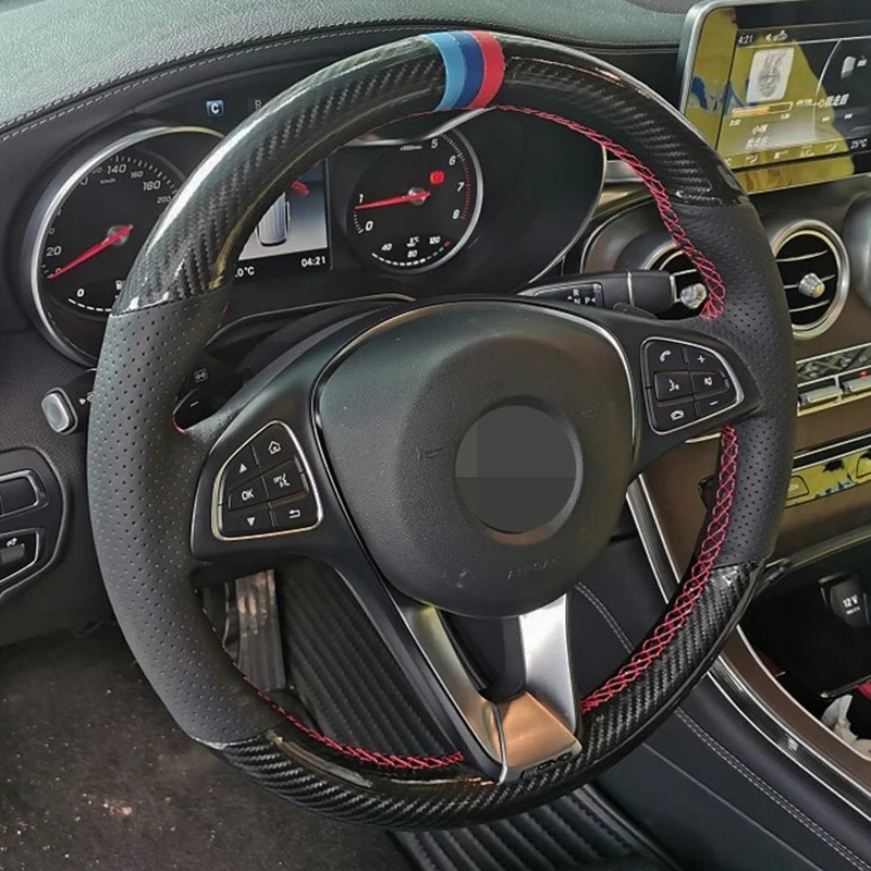 Чехол рулевого колеса автомобиля DIY на нескользящей подошве из натуральной кожи из углеродного волокна для Mercedes-Benz W176 A180 A200 B180 B200