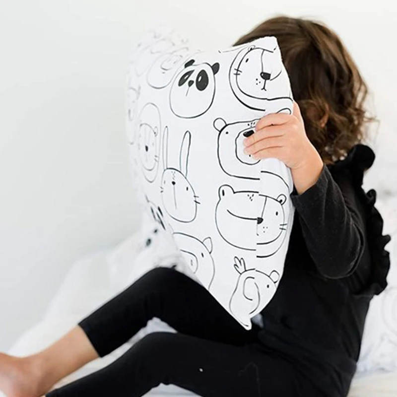 Дизайн Застежки-конверта: из-за застежки-молнии волосы ребенка или ребенка жевать молнию. Наволочка для малышей не имеет застежек-молний, но имеет дизайн конверта для оптимального комфорта и удобства надевания или вынимания подушки.