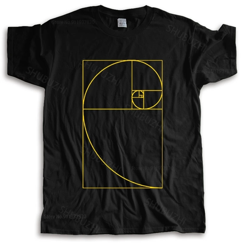 Футболка мужская хлопковая, модная тенниска на спирали с принтом священных Фибоначчи, с золотым соотношением сторон, лето