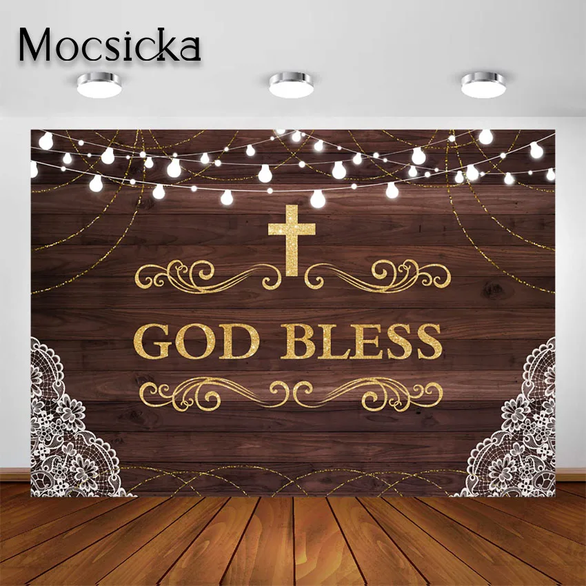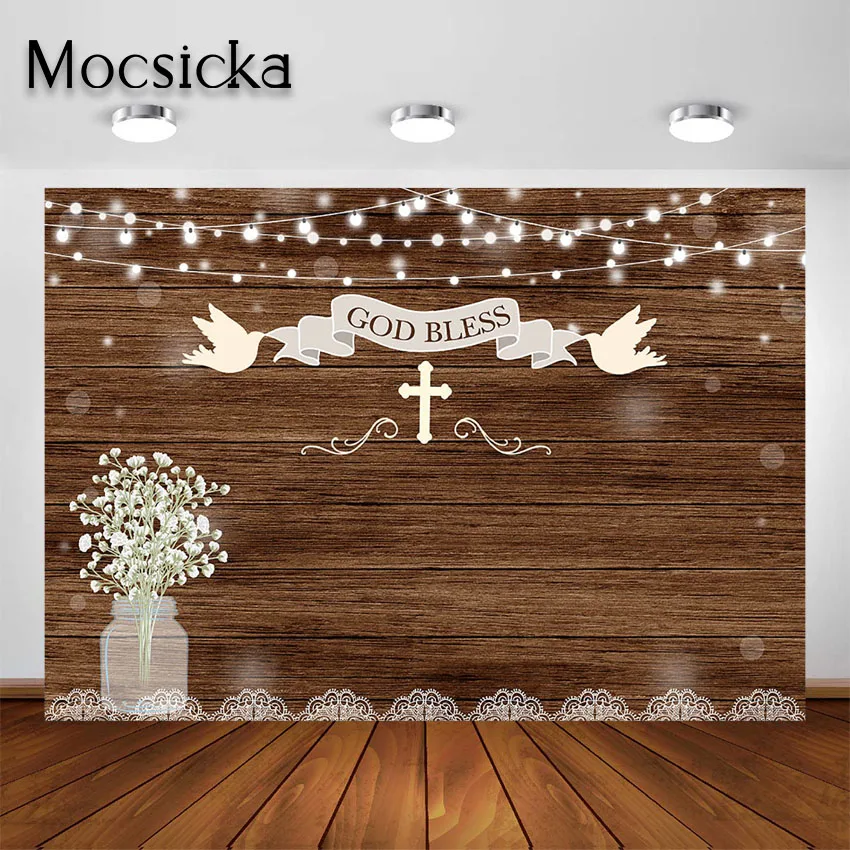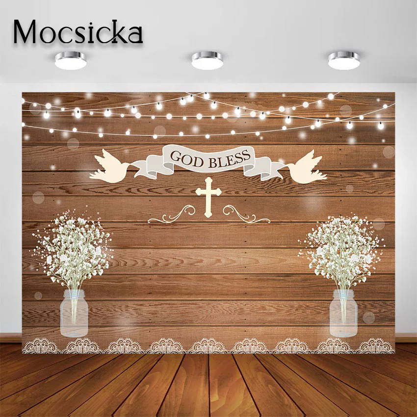 Mocsicka фон для фотосъемки с изображением дерева в деревенском стиле для Первого Святого Причастия с изображением бога, пещеры, каменщика, банок, крестин, детский душ