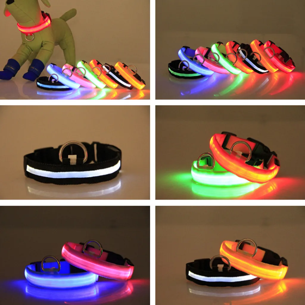 Ошейник для домашних животных с подсветкой нейлоновый однотонный светодиодный светящийся собачий ошейник ожерелье