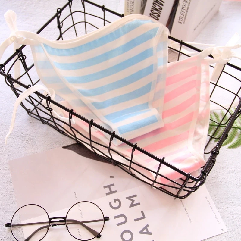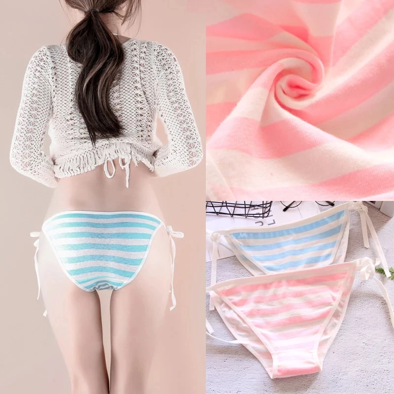 Аниме Для женщин Лолита Нижнее белье, трусики, Дамское белье, нижнее белье, голубого, розового и белого цвета в полоску, бикини трусы сексуальные обувь с принтом кошачий коготь Косплэй сторона Strappy трусики
