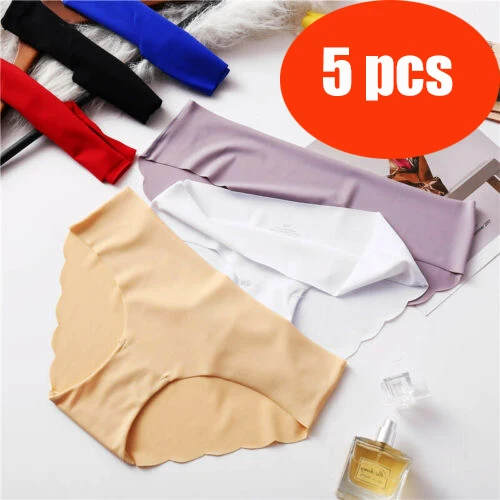 5 шт.лот женские бесшовные трусики, шелковое нижнее белье со средней талией для девочек, комплект женских трусов большого размера, простые трусики XL
