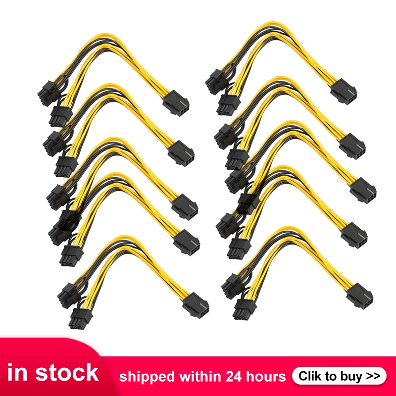 10 шт. PCI-Express PCIE 6 Pin на Dual 8 (6 + 2)Pin VGA Графическая Видеокарта адаптер кабель питания 20 см PCIE PCI Express 8 дюймов