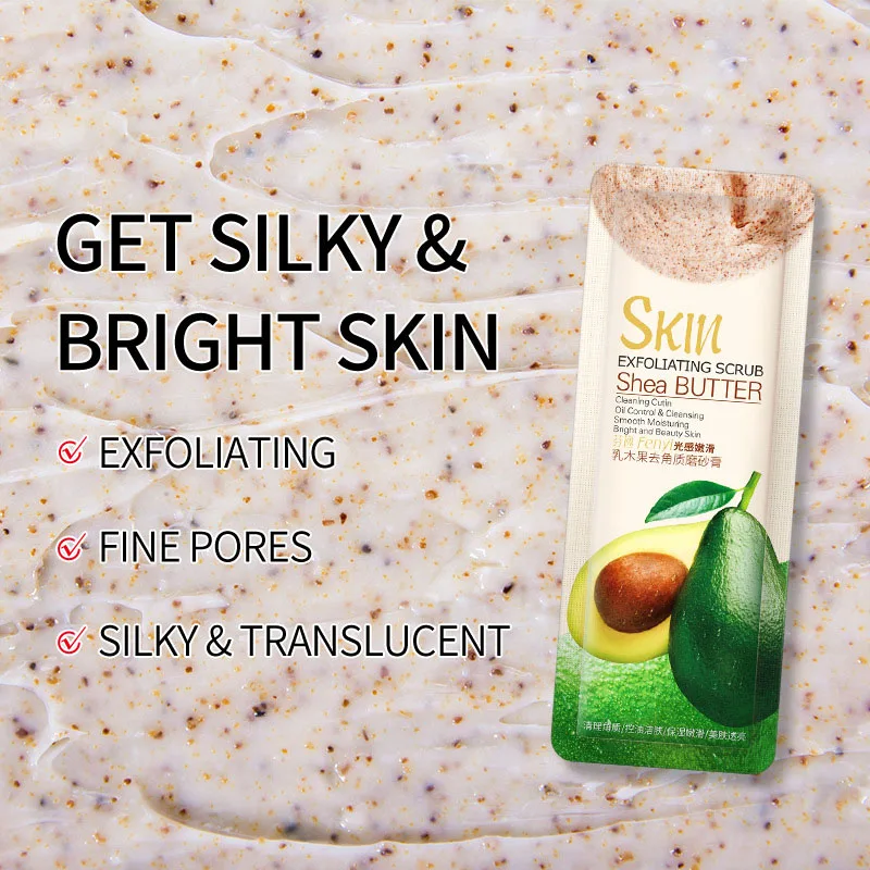Скраб для тела, Отшелушивающий гель с маслом Ши, глубокое очищение, лечение акне, разглаживание, отбеливание, авокадо, умывание