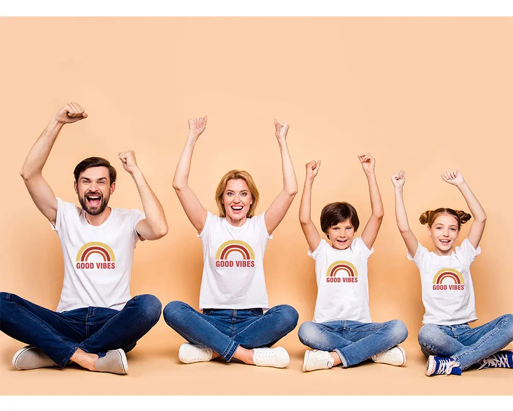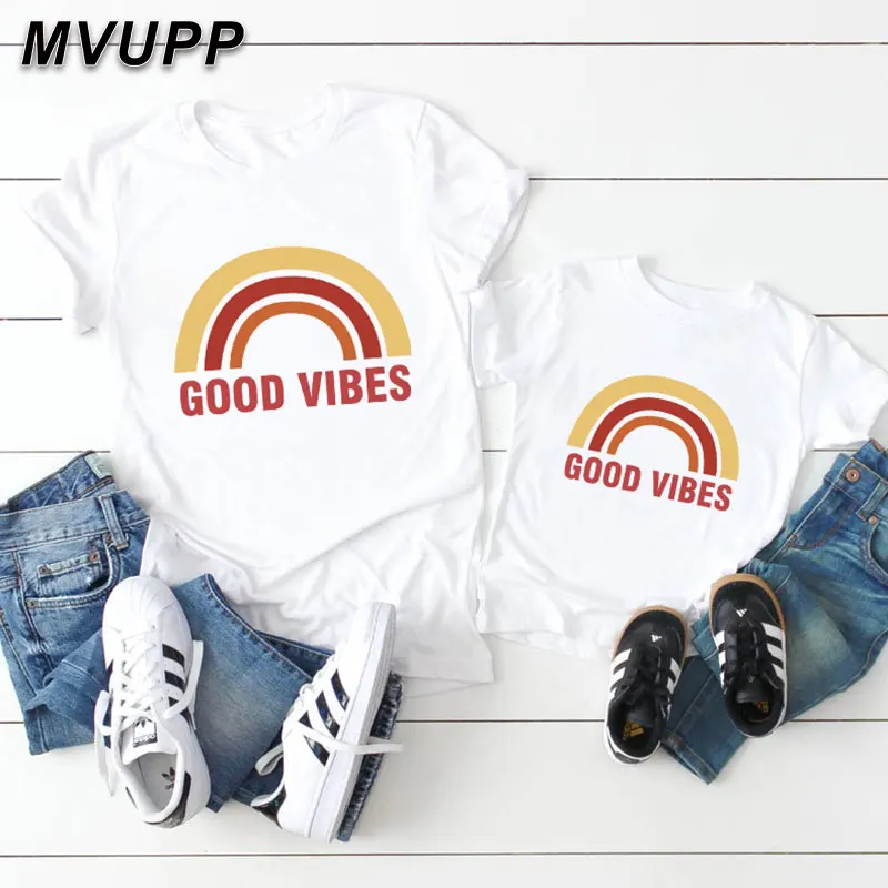 Семейная Одинаковая одежда MVUPP, одежда для мамы и дочки, футболки для мальчиков и пап, одежда для мамы и дочки GOOD VIBES, летние наряды для папы