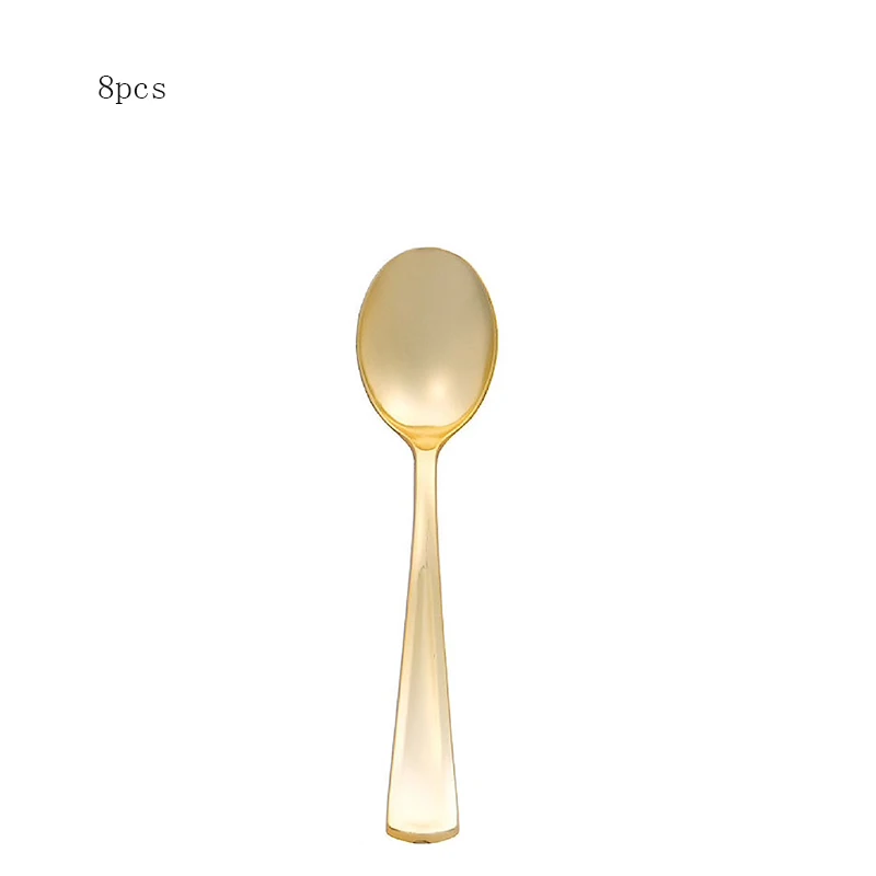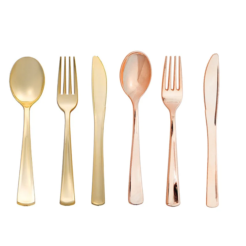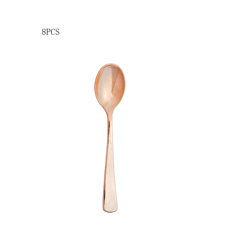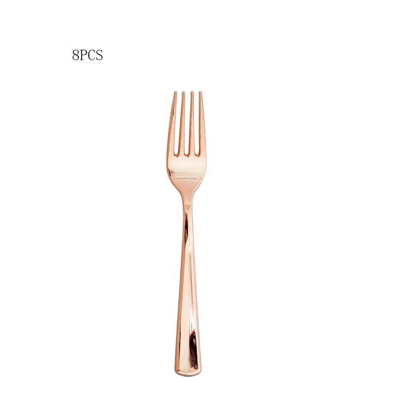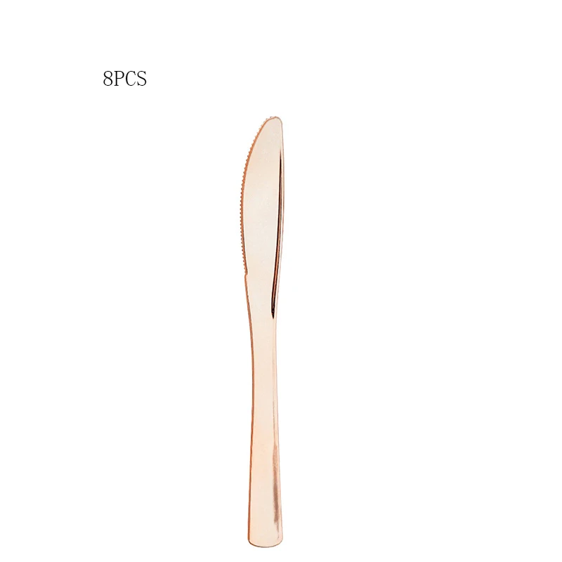 Одноразовая посуда из розового золота, 8 шт., пластиковый нож, вилка, ложка, украшение для дня рождения вечерние свадьбы, детского праздвечерние