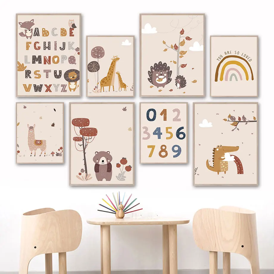 Буквы номер альпака "Жираф" Крокодил лиса Лев, рисунок на холсте детской Nordic Плакаты и принты настенные картины для детской комнаты настенный Декор
