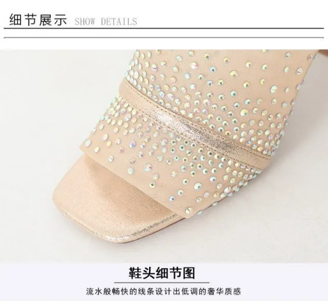 Женские сетчатые шлепанцы, прозрачные сандалии на высоком каблуке, ...