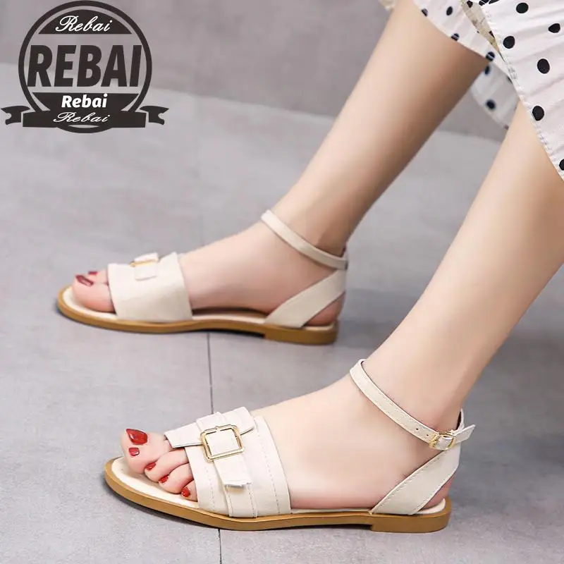 Сандалии Женские однотонные на плоской подошве, модные уличные тапо...
