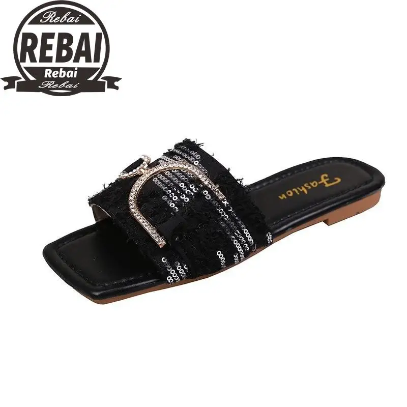 Шлепанцы женские с квадратным носком, плоская подошва, сланцы, дома...
