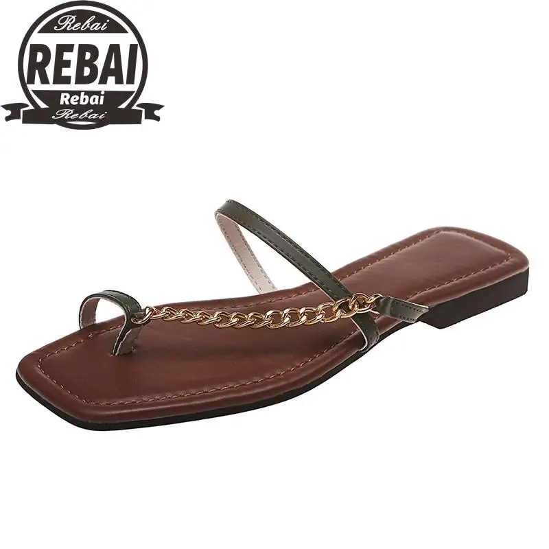 Женские шлепанцы с открытым носком, металлическая цепочка, искусств...
