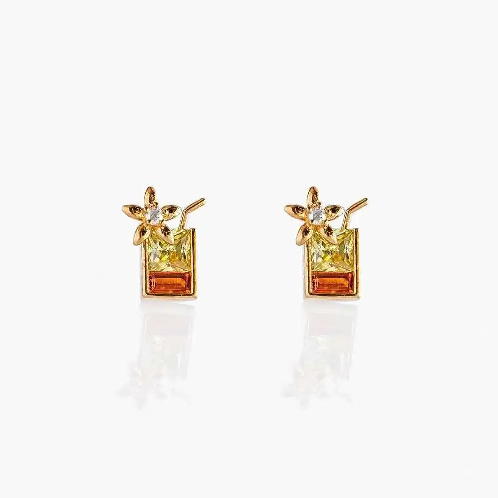 Новинка 2021, серьги в стиле ins pop, золотые серьги в форме элемента мороженого, цветные циркониевые серьги, новые женские серьги в стиле восточных ворот